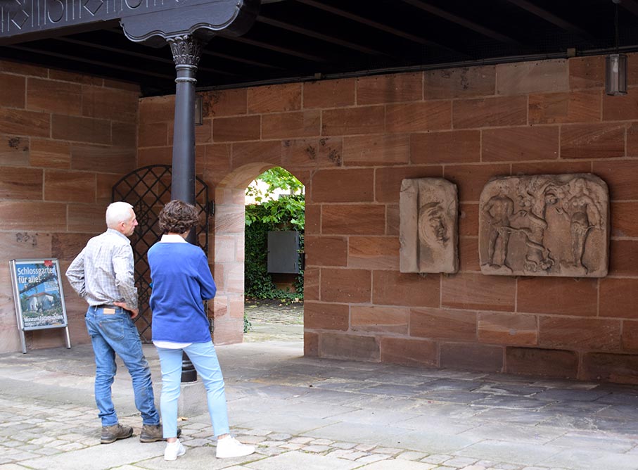 Die sollen künftig unter der Balustrade zwischen Schloss und Nebengebäude positioniert werden, wieder im Freien, aber auf Pflaster und vor Wind und Regen weitgehend geschützt. Kuhnlein rät zudem, die Köpfe auf Gestelle zu montieren – mit Abstand zum Boden. Sie könnten zudem imprägniert werden, am besten mit natürlichem Leinöl.