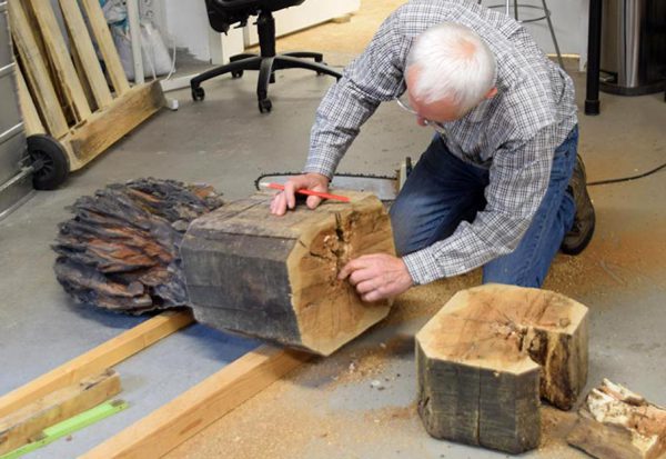 Hat die Witterung der Kunst geschadet?“ Das wollte Museumsleiterin Ulrike Berninger wissen und lud Andreas Kuhnlein zur Inspektion ein. Der holte beim Besuch im August gleich die Kettensäge aus dem Kofferraum. Jedem Kunstfreund würde das Herz stehenbleiben, doch der Künstler ist pragmatisch.